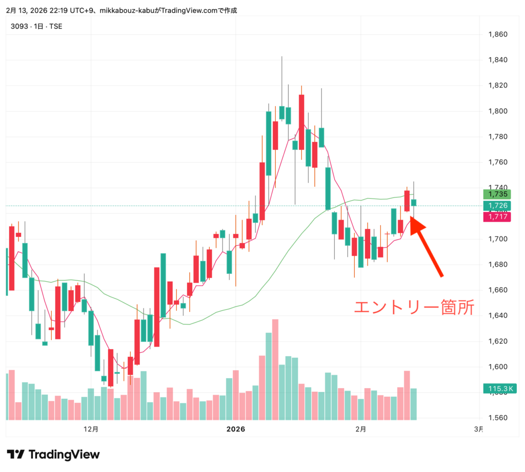 トレジャー 3093 3株(平均取得単価:1,744円)※昨日エントリー
