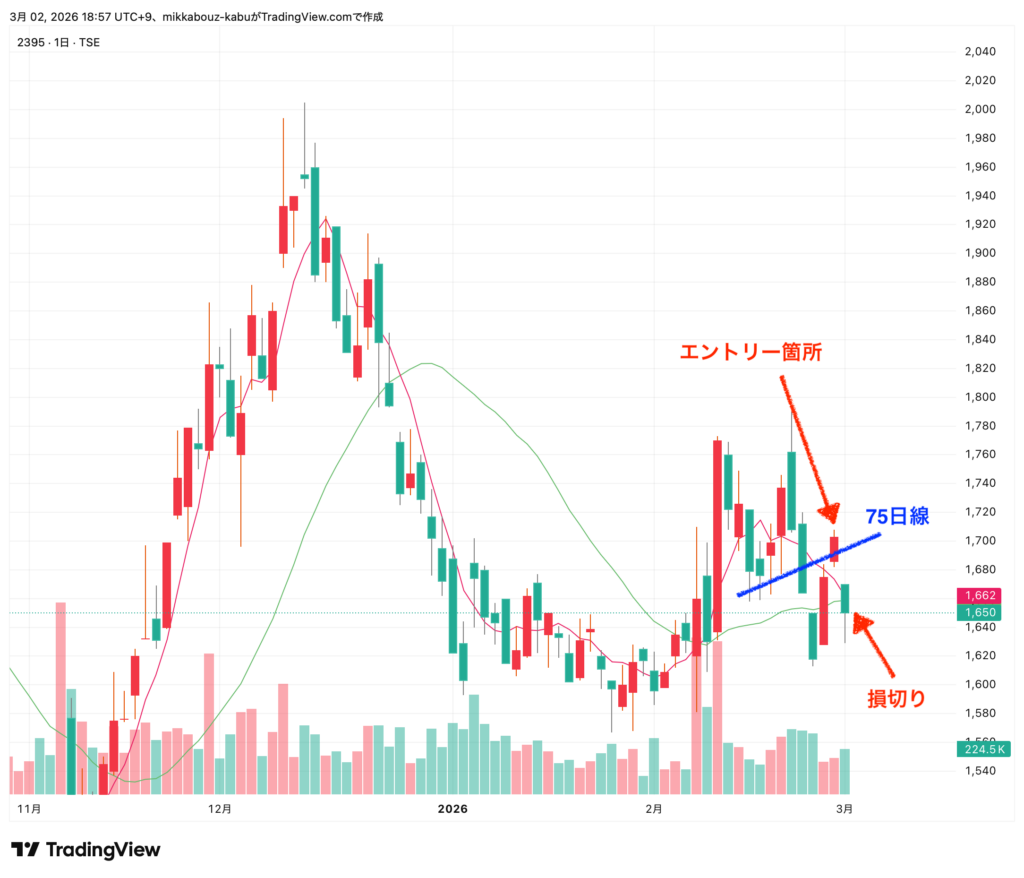 本運用にて初エントリー銘柄であったが、しっかり失敗に終わる