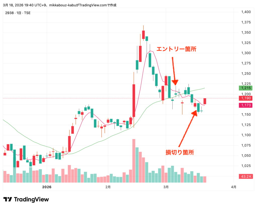 先日エントリーした銘柄、残念ながら損切りという結末になったので、