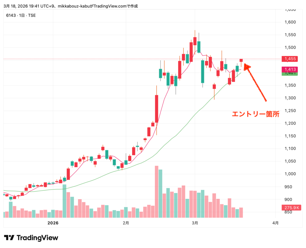 損切り(2938)と新エントリー(6143) スイング記録#14